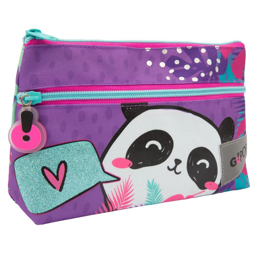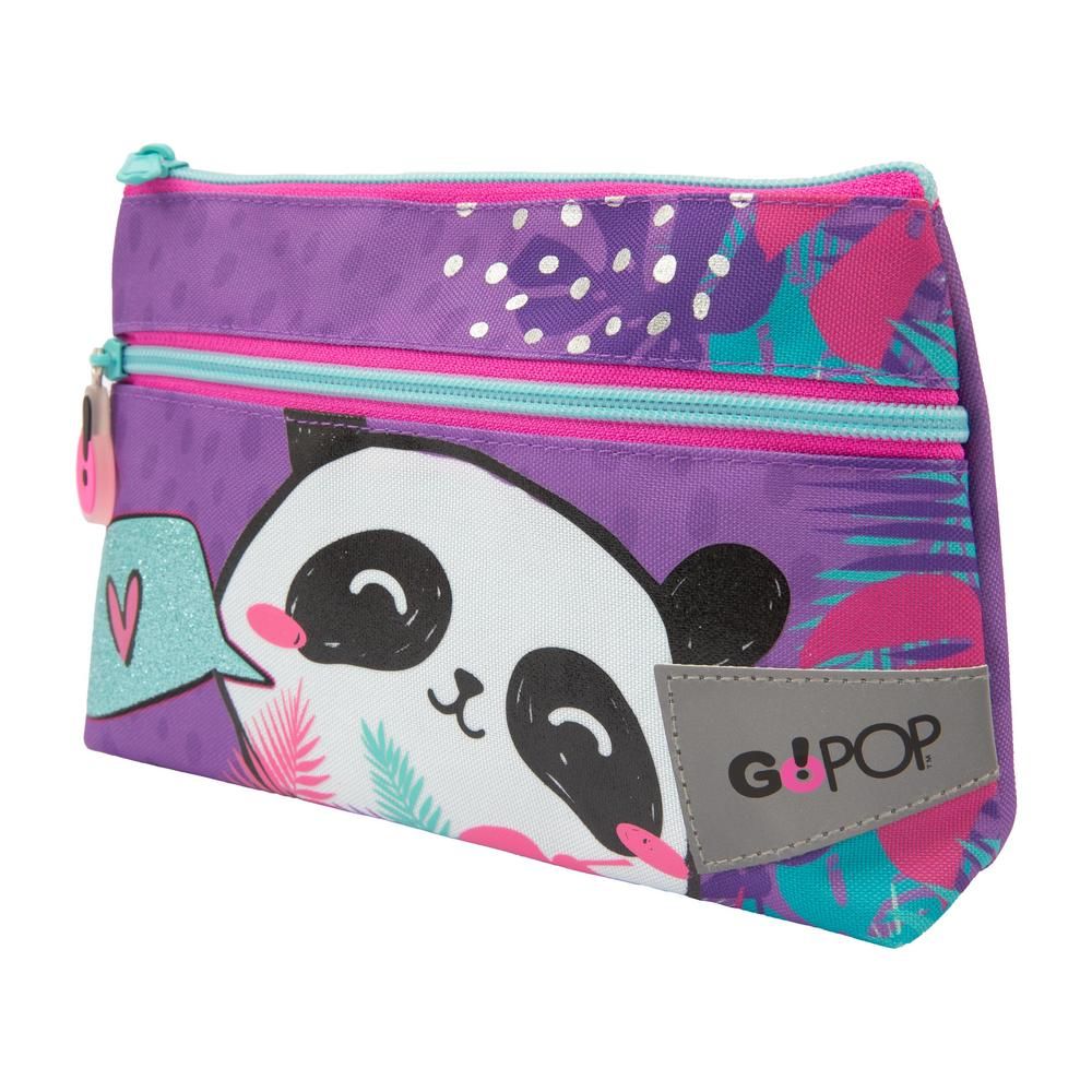 Dimensione: 18x14x4 cmBellissimo astuccio maxi bustina GOPOP collezione Panda,con ben 2 zip portabiro da coordinare con lo zaino scuola e gli altri articoli della stessa collezione.
