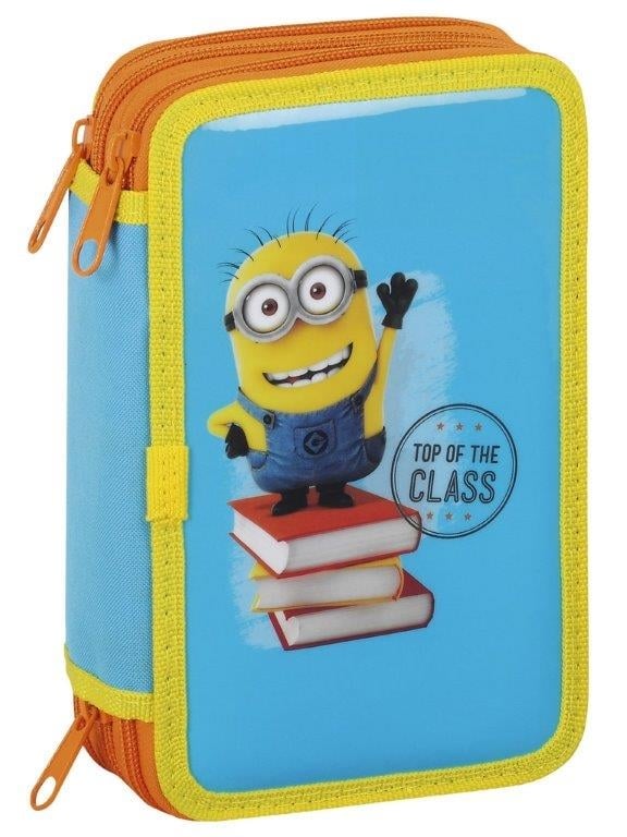 Astuccio 3 Zip Minions Cattivissimo Me 3 Contenuto: 14 pennarelli Giotto, 16 Matite colorate, 1 righello, 1 matita, 1 penna, 1 righello, 1 goniometro, 1 temperino, 1 gomma Misura: 20×12,5×5,5 cm