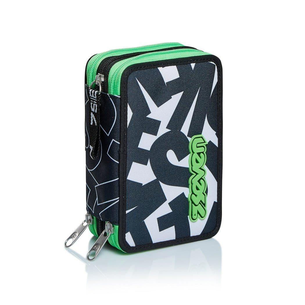 L’astuccio attrezzato Seven è il massimo. Ha tre scomparti completi di tutto. Il contenuto è di primissima qualità come la penna cancellabile Frixion, la penna a sfera Tratto1Uno Grip, i 18 pennarelli Giotto Turbocolor, i 18 pastelli a colori Giotto Supermina, la colla Pritt e tutto il resto che ti serve per la scuola. Ha grafiche coloratissime e coordinate agli zaini e ai trolley. Scegli tu l’abbinamento che ti si addice. .