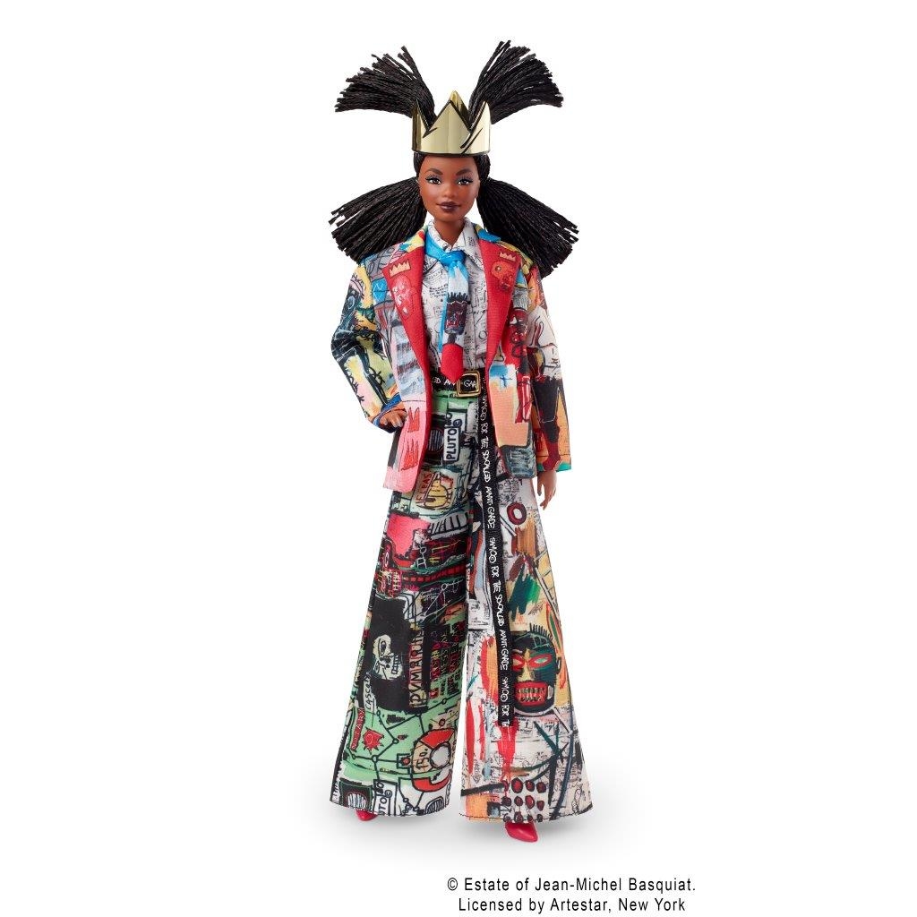 Barbie celebra il prestigioso artista Jean-Michel Basquiat, il cui prolifico corpo di opere ha giocato un ruolo essenziale nell’elevare la street art underground al meritato riconoscimento tra i ranghi più alti del mondo dell’arte. I suoi brillanti dipinti sono un’ondata di poesia visiva, dicotomie culturali e affermazioni sociali coinvolgenti in grado di essere ancora oggi d’ispirazione. In uno splendido tributo all’artista, questa bambola Barbie da collezione indossa un outfit completo ispirato a elementi noti che ricorrono nelle opere e nella carriera di Basquiat. Dalla scintillante corona dorata che le cinge il capo al completo realizzato su misura e impreziosito da piccole opere d’arte, due icone culturali si uniscono nella magnifica collaborazione Jean-Michel Basquiat X Barbie. Gold Label. Include bambola, piedistallo e Certificato di Autenticità. La bambola non può reggersi in piedi da sola. Colori e decorazioni possono variare.