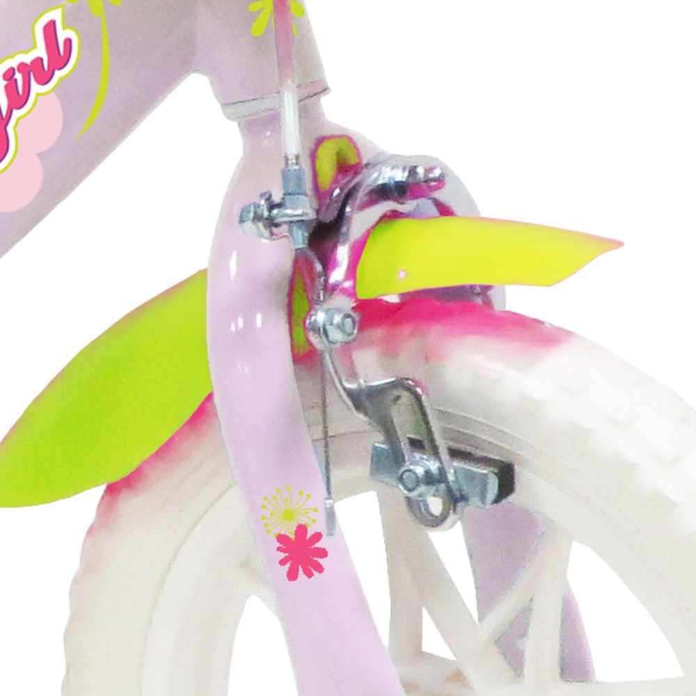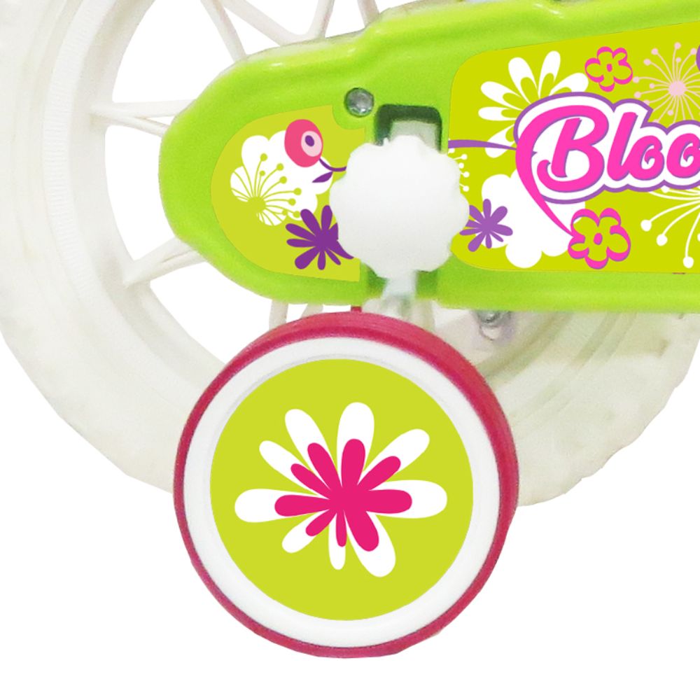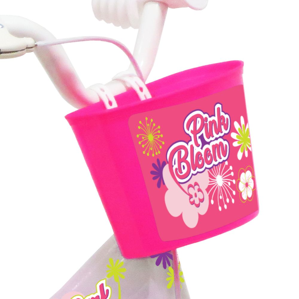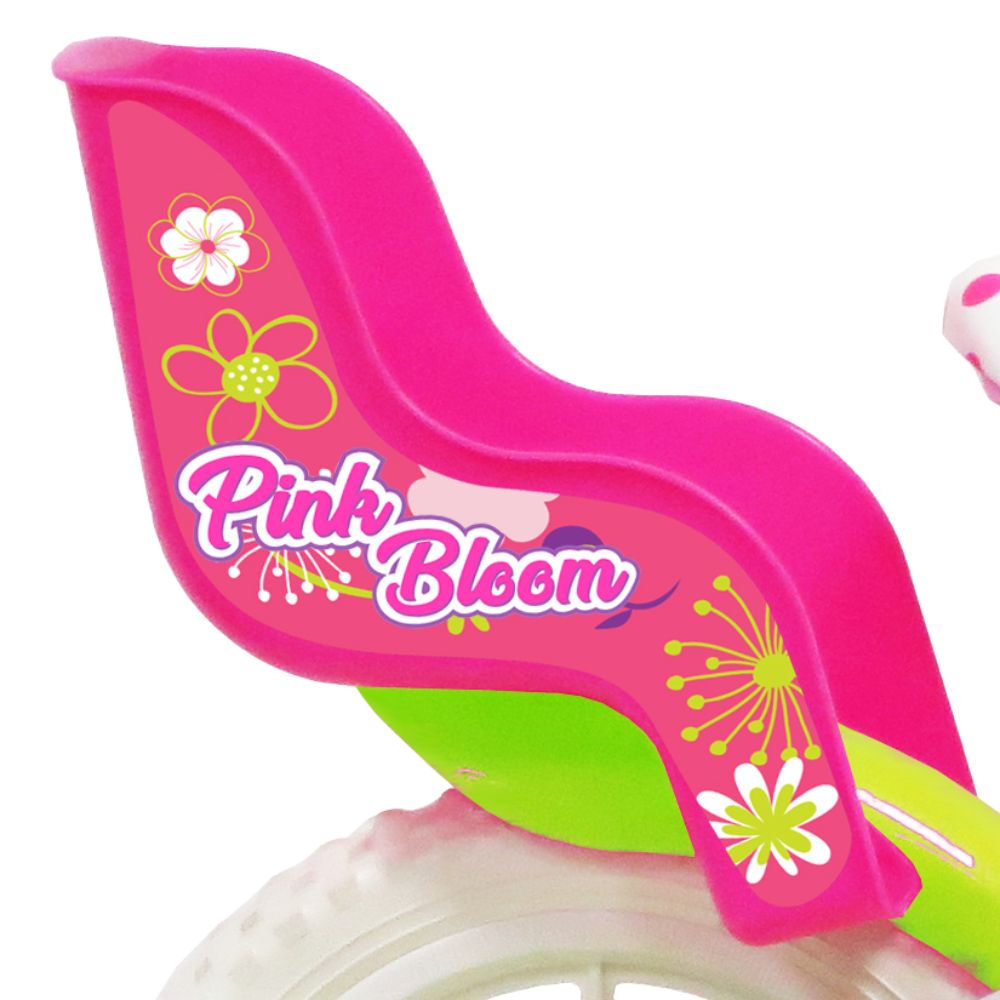 Realizzata completamente in Italia la bicicletta Pink Bloom ha colori brillantissimi e materiali di prima qualità ed è disponibile nelle misure 12, 14 e 16 pollici. Nella 12 pollici il telaio è in acciaio e le ruote in EVA. I freni sono in acciaio. Ha 2 ruote stabilizzatrici facilmente smontabili ed è fornita con 1 cestino portagoggetti, 1 portabambola posteriore e 1 trombetta in plastica.