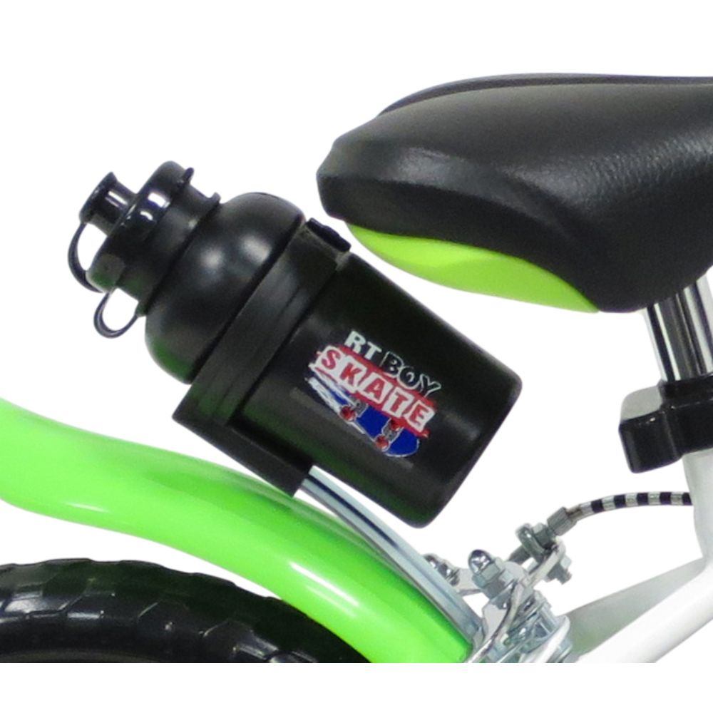 Bicicletta bambino 12pollici Skate. La bicicletta è realizzata completamente in Italia con materiali di ottima qualità fatti per dare sicurezza e comfort ai bambini. Questa bicicletta di Skate ha le ruote in EVA di diametro 12 e telaio in acciaio. In dotazione è incluso: frontalino, borraccia e rotelle stabilizzatrici, facilissime da montare e smontare grazie al pomello in dotazione.