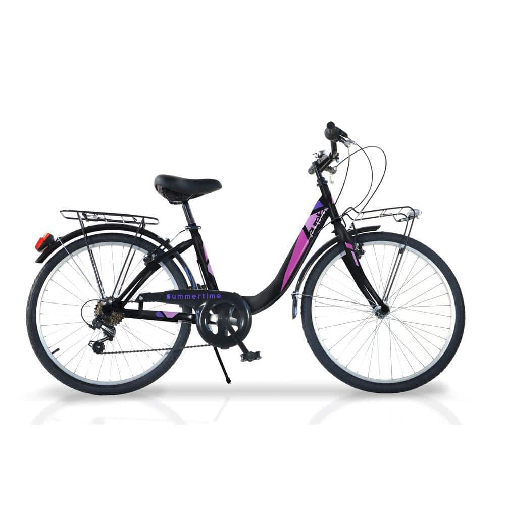 Dimensione: 24 polliciLa SUMMERTIME 24 pollici è una bicicletta pensata per ragazze che cercano comfort, praticità e uno stile elegante per l’uso quotidiano. Il colore Nero dona un look sobrio e moderno, mentre la struttura solida e gli accessori inclusi la rendono ideale per spostamenti urbani e tempo libero. Progettata per offrire una guida stabile e confortevole, è perfetta per accompagnare la crescita con sicurezza. Una bicicletta pratica e completa, ideale per muoversi ogni giorno con comfort e stile.
