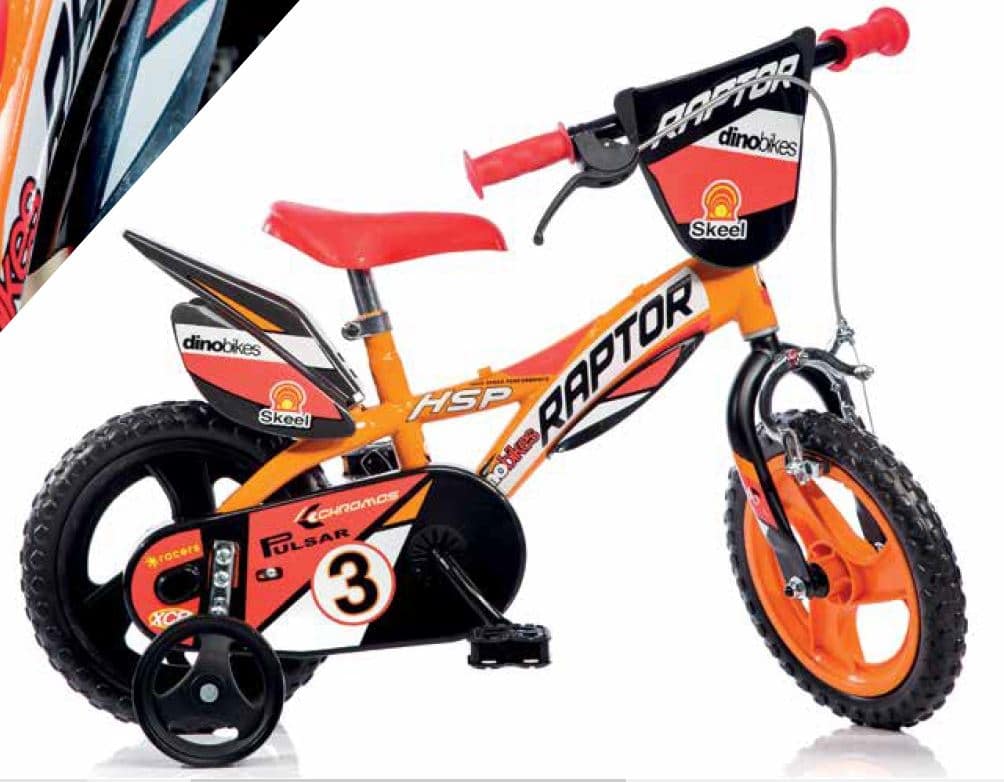 Bicicletta Bambino modello Raptor. Diametro ruote 12 pollici.Realizzata interamente in Italia colore arancione cerchi in lega, una bellissima Bicicletta sportiva per i nostri piccoli. Ruote in materiale composito freno anteriore mascherina frontale e parafango. Made In Italy