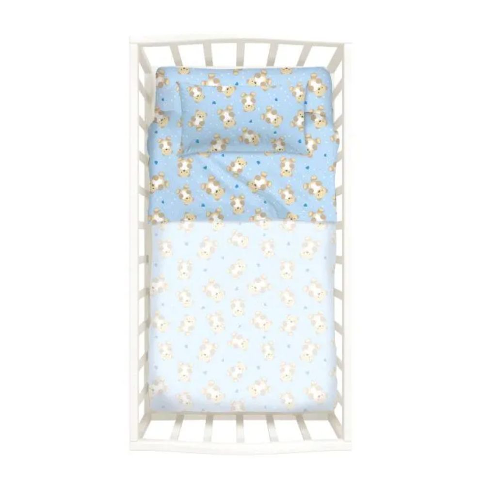 Completo lenzuola Orsetti Azzurro Caleffi per lettino include: