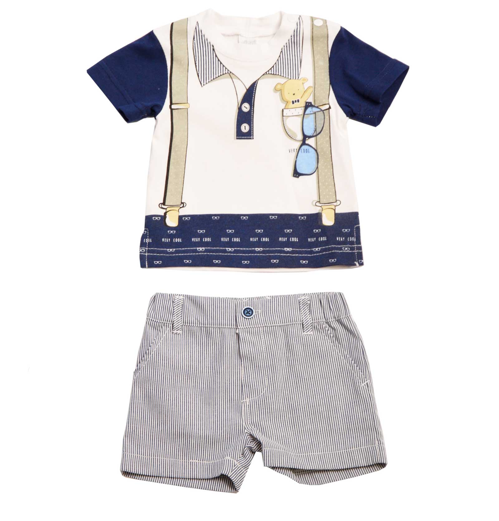Completo Neonato Estivo Ellepi con pantaloncini in tela rigata Blu