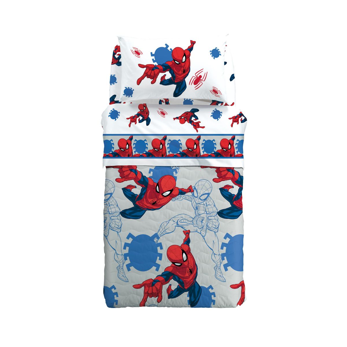 Copriletto Primaverile Caleffi collezione Spiderman America. Per letto singolo. In cotone anallergico, prodotto sartorialmente a Mantova.