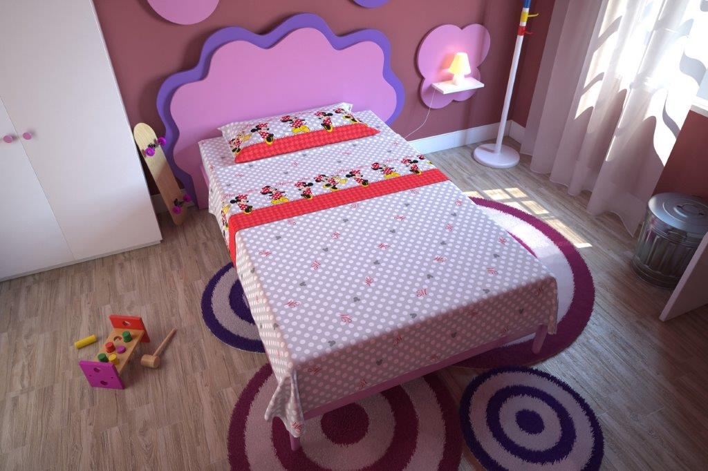 Completo letto singolo Disney Minnie. Il completo è composto da 3 differenti pezzi lenzuolo di sopra lenzuolo di sotto e federa. Realizato interamente in cotone lavabile in lavatrice a 40° con stampe di ottima definizione. Il prodotto ideale per rendere allegra la camera della vostra bambina.
