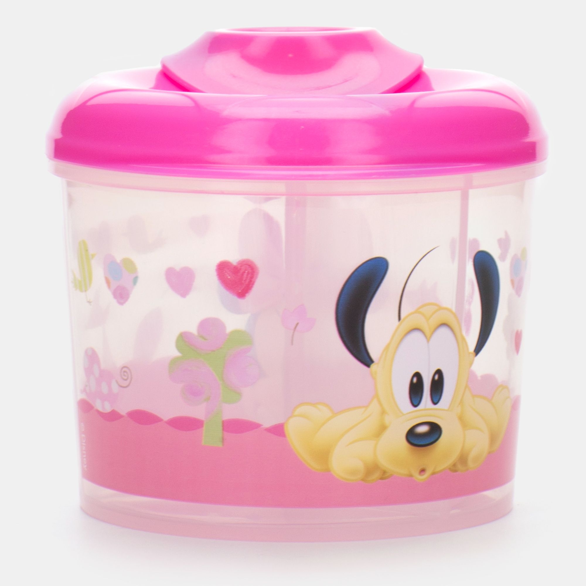 Dispenser per il latte in polvere personalizzato Minnie Baby. In polipropilene, leggero e resistente, ha tre scomparti ed è utile in viaggio e fuori casa.