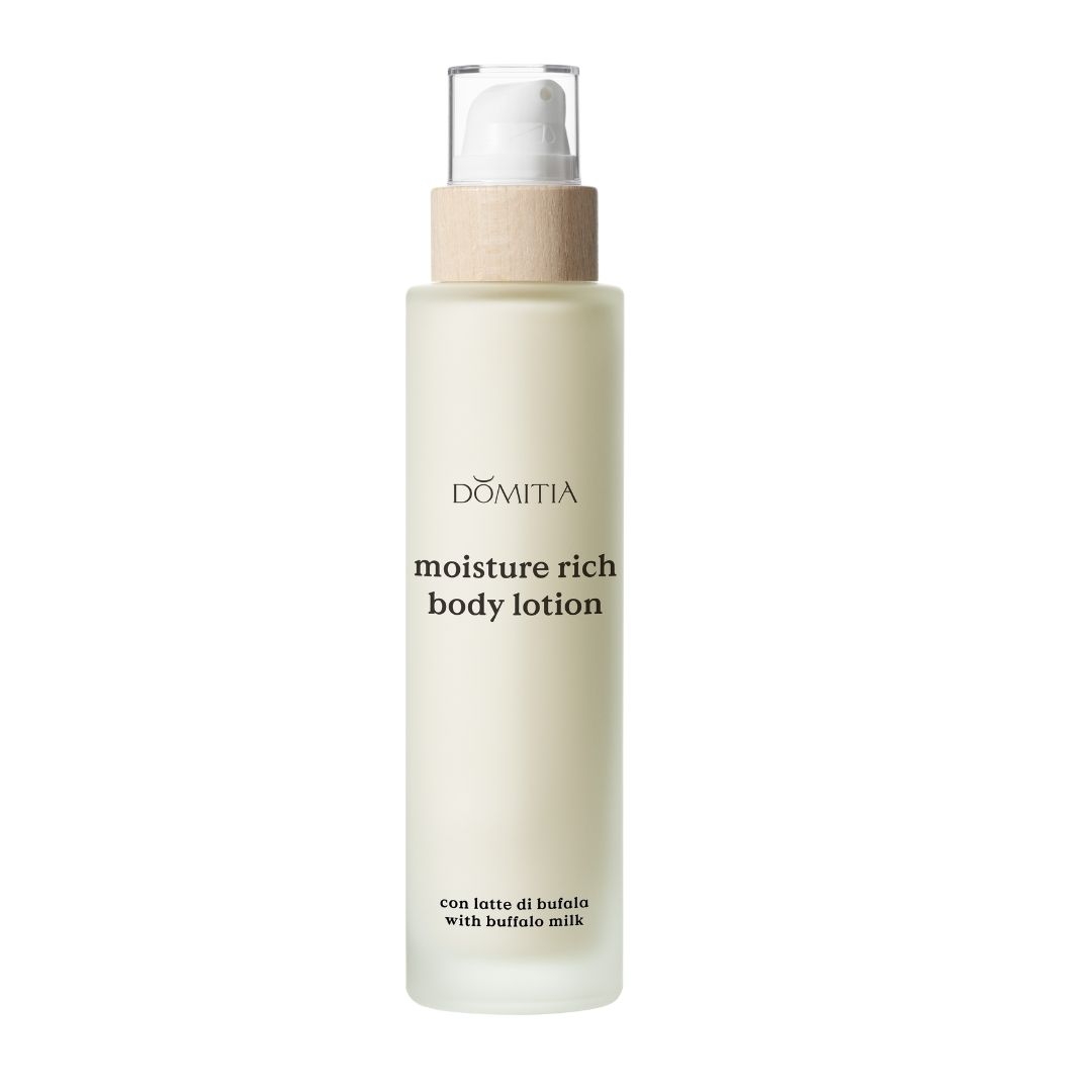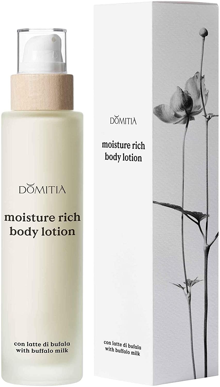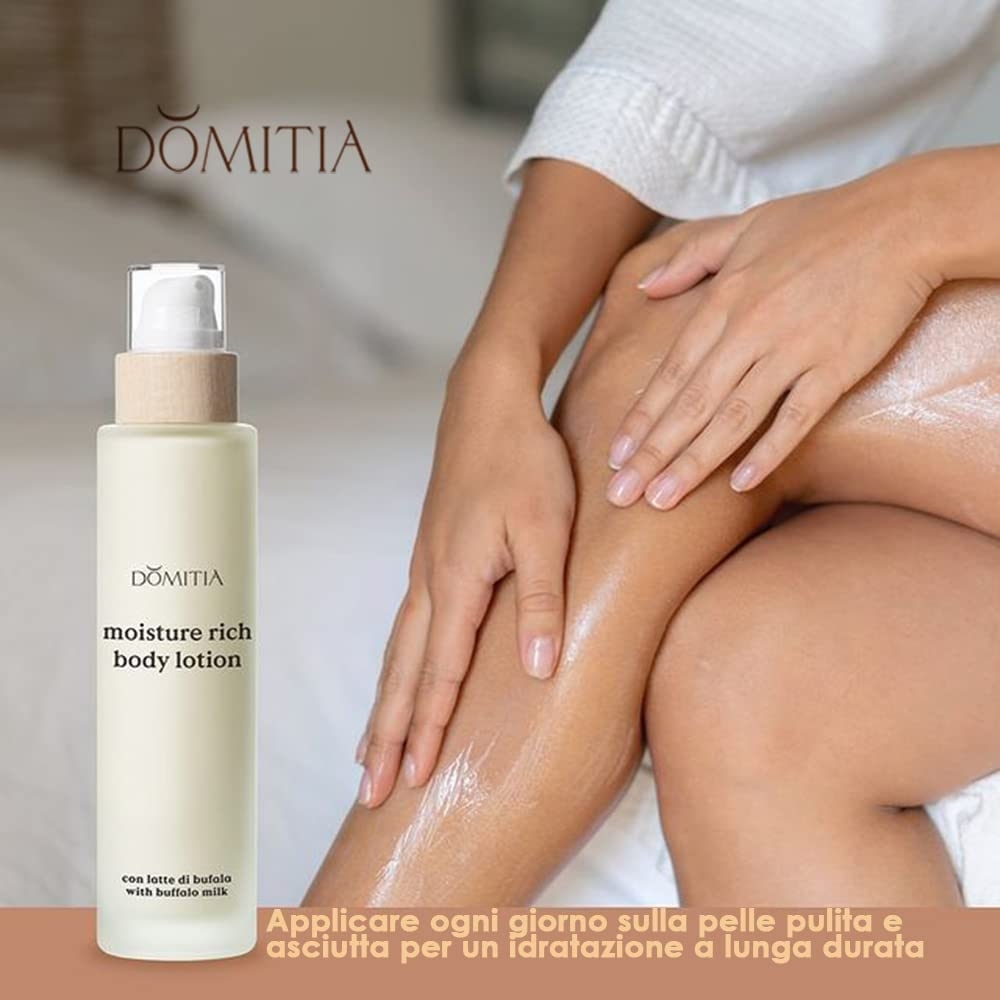 Lozione per il corpo leggera e ad assorbimento rapido, penetra nella pelle lasciandola morbida e idratata. Con l’aggiunta di potenti estratti naturali e di latte di bufala ricco di sostanze nutritive. Fornisce un’eccellente idratazione senza lasciare fastidiose sensazioni di unto. Il latte di bufala con il suo contenuto altamente nutritivo idrata, risana e protegge la pelle. Grazie alle straordinarie proprietà dell’aloe vera, combinata con gli olii di oliva extra vergine, di germe di grano, di armellina e di mandorla dolce, idrata intensamente, ammorbidisce e protegge. Il burro di karité aiuta a fissare l’idratazione e mantiene la pelle idratata più a lungo. L’estratto di lavanda, con le sue proprietà antimicrobiche, aiuta a depurare la pelle e la prepara a una migliore idratazione.Applicare ogni giorno sulla pelle pulita e asciutta per un’idratazione di lunga durata.Adatta a tutti i tipi di pelle, incluse quelle sensibili. Dermatologicamente testato per pelli sensibili. Solo per uso esterno. Evitare il contatto con gli occhi. Se l’irritazione persiste, interrompere l’uso. Tenere fuori dalla portata dei bambini. Trattandosi di prodotti certificati biologici e con soli ingredienti naturali, pensati per le pelli delicate delle mamme e dei loro bambini, i prodotti Domitia hanno una shelf life complessiva di 12 mesi dalla data di produzione, al contrario di altri cosmetici che contengono ingredienti di origine non naturale per prolungare la vita utile. Si tratta, pertanto, di prodotti in perfette condizioni e che non hanno nessun motivo per non essere utilizzati fino alla data indicata sulla confezione. Per tutti questi articoli riportiamo nella scheda del prodotto la data di scadenza cosi chè tu possa sapere, prima di acquistarlo, entro che data il prodotto è ancora valido e può essere utilizzato Ingredienti: Aqua, Aloe Barbadensis (Aloe Vera) Leaf Extract*, Cetearyl Alcohol, Olea Europaea (Olive) Fruit Extract*, Triticum Vulgare (Wheat) Germ Oil*, Glicerina, Cocogliceridi, Cetearyl Glucoside, Latte di Bufala Intero Secco, Lavandula Angustifolia (Lavanda) Estratto di fiori*, Butyrospermum Parkii (Karité)*, Prunus Armeniaca (Albicocca) Olio di noccioli*, Prunus Amygdalus Dulcis (Mandorla dolce) Olio*, Alcool benzilico, Acido benzoico, Acido sorbico, Sodio deidroacetato, Parfum, Algin, Acido Citrico, Benzil Salicilato, Limonene, Citronellolo, Linaloolo, Cumarina. *INGREDIENTE DA AGRICOLTURA BIOLOGICA.