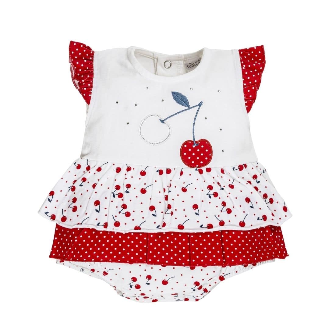 Tutina pagliaccetto neonata con ricamo ciliegie e bottoncini