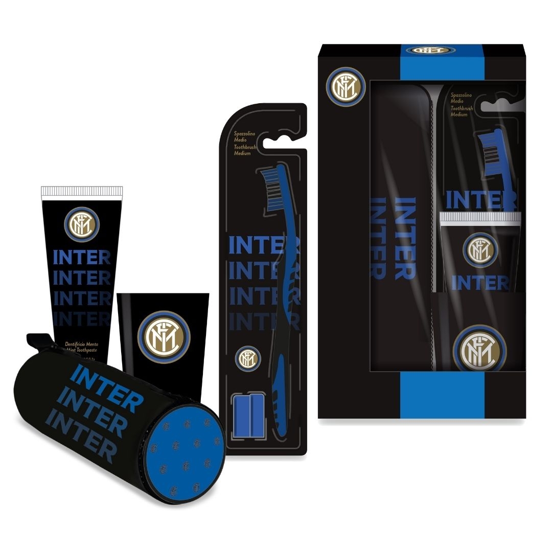 Una bellissima idea regalo per tutti i tifosi dell’inter prodotti per l’igiene dentale da portare sempre con se in casa o in viaggio.