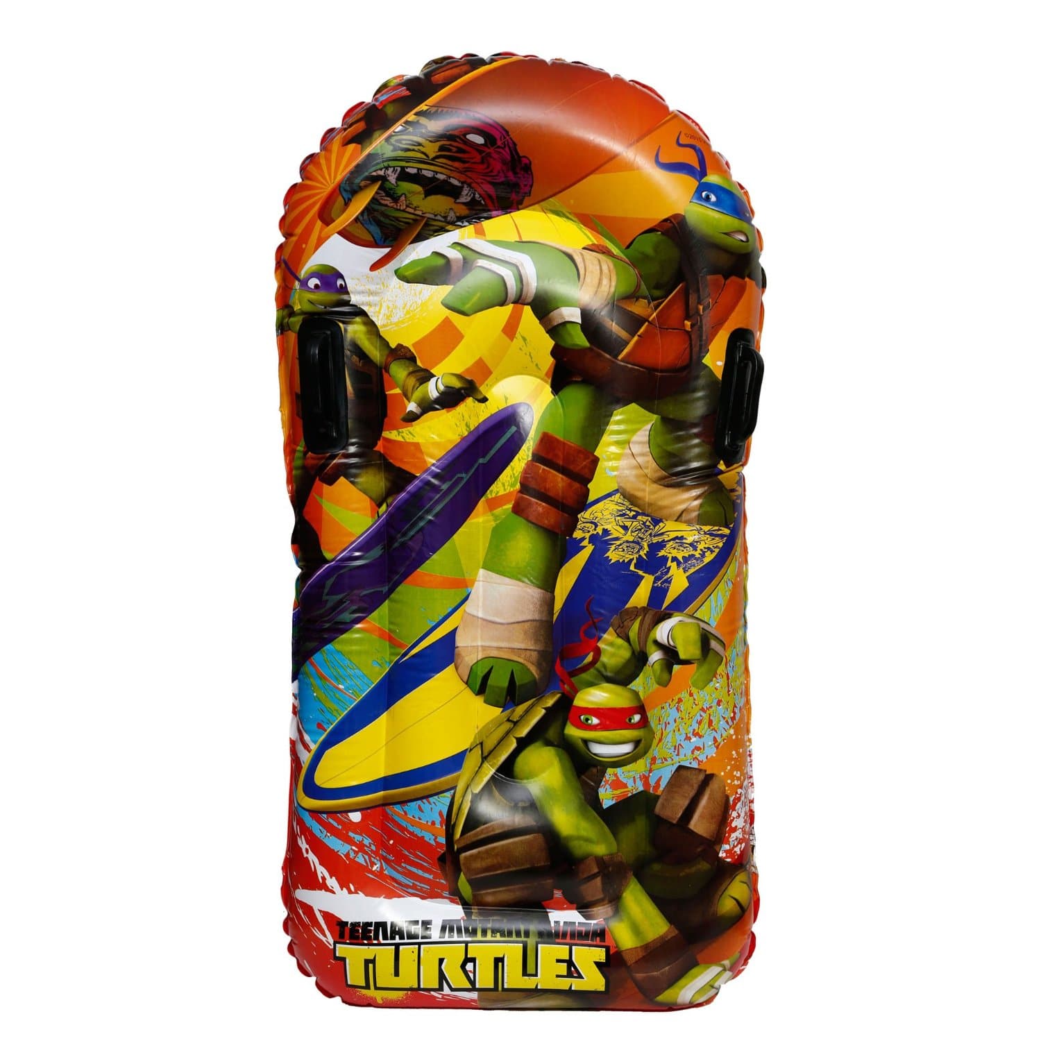 Tuffati nel mondo delle Turtles! Il canotto è interamente personalizzato con i personaggi della celebre serie televisiva. L’articolo presenta due camere d’aria che grazie alla loro moderna fabbricazione renderanno semplice e veloce le attività di gonfiaggio e sgonfiaggio del prodotto. Dimensioni 100 Cm (Lunghezza) x 70 Cm (Larghezza).