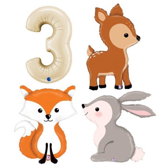 il set di palloncini con con gli animaletti del bosco è la soluzione più dolce che puoi trovare per il compleanno del tuo bambino o bambina. composto dal numero 3 color crema e da un dolcissimo coniglio, una volpa e un cerbiatto è ideale per i compleanni dei bambini più piccoli. i pallonicini possono essere gonfiati sia con aria che con elio, il che li rende versatili per qualsiasi festa, come compleanni, festa di fine scuola, gite, appuntamenti di gioco etc…