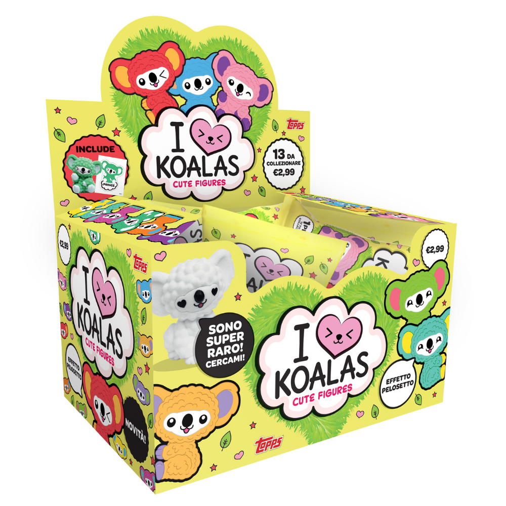 Composta da 13 soggetti coloratissimi e super cute, tra cui il super raro Diamond, la linea I Love Koalas è pensata per i piccoli amanti degli animali e della natura. Ogni cofanetto include 12 personaggi. Abbinato ad ogni Koala c’è un simpatico adesivo ed anche un mini-magazine che permetterà ai bambini di tenere traccia della propria collezione e, allo stesso tempo, di scoprire i nomi e le caratteristiche di questo meraviglioso mammifero. Packaging realizzato con materiali a ridotto impatto ambientale. *bustine assortite contenuto a sorpresa *bustine assortite contenuto a sorpresa