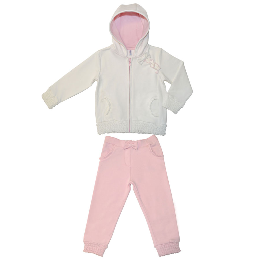 Completo felpa: pantalone con fiocco e tasche + maglia con zip, tasche e cappuccio