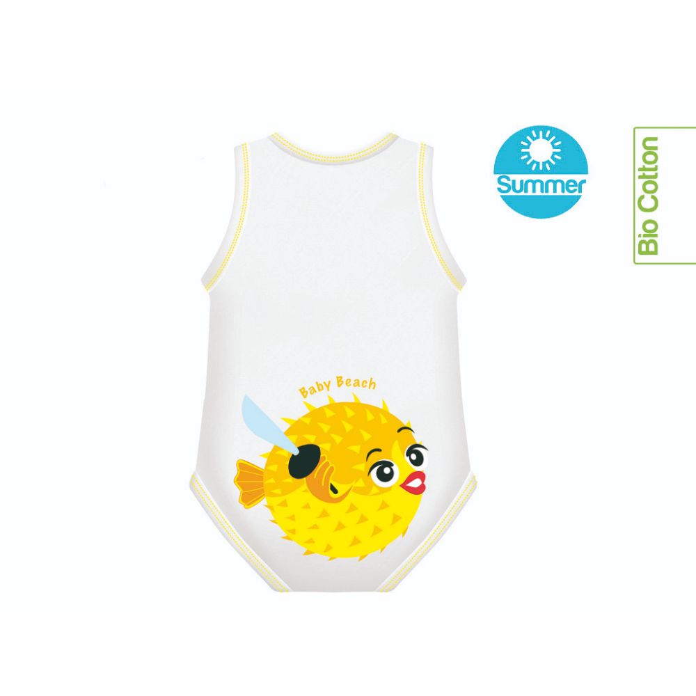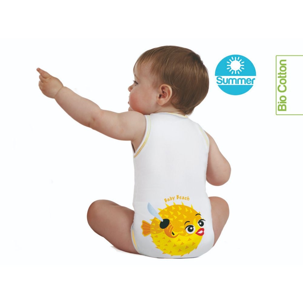 Body 0-36m J BIMBI, in Bio Cotton Summer BabyPirates – freschi e smanicati. Fantasia con Pesce Palla.I body 0-36m J BIMBI sono gli unici body a taglia unica che vestono perfettamente il tuo bambino dalla nascita ai 3 anni grazie alla loro tecnologia brevettata che li rende estremamente estensibili. Il cotone biologico con cui sono filati inoltre garantisce un body sicuro e confortevole, traspirante e delicatissimo sulla pelle sensibile dei neonati.