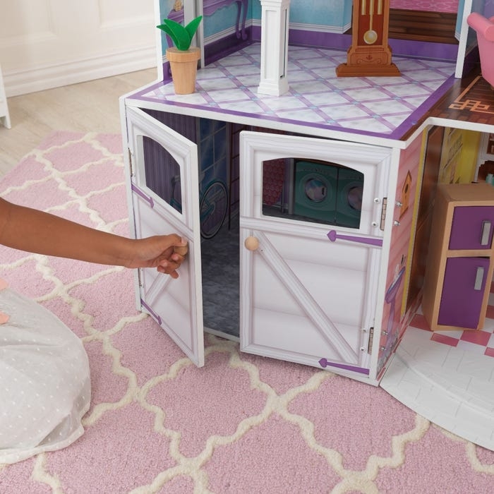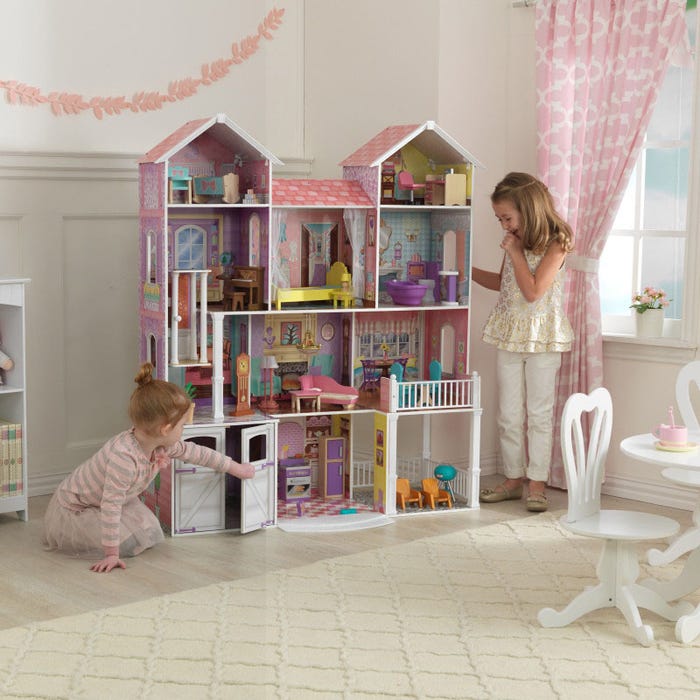 Dimensione: 119,38×53,34×134,62La grande Casa delle bambole Country Estate KidKraft offre ampio spazio anche alla più sconfinata immaginazione. Con 10 stanze, una veranda, quattro piani e un’altezza di oltre 1,2 m, è grande abbastanza per essere condivisa. Le caratteristiche interattive includono le porte del garage che si aprono e si chiudono e l’ascensore che collega il secondo e terzo piano. Il kit da 31 accessori in dotazione ha un barbecue da esterni e mobili da veranda. Potrai giocare con le tue bambole da 30 cm in una casa spettacolare.