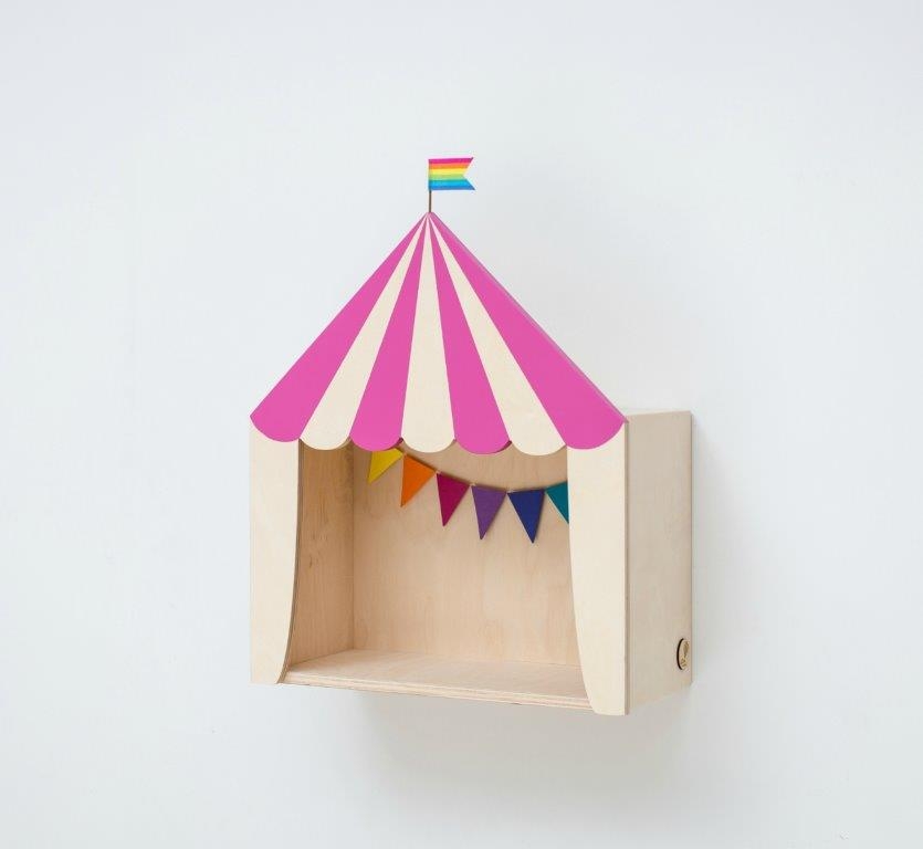 Dimensione: 33,5×39,5×16 cmCrea magia sulle parete della camera dei tuoi bambini e lascia volare la loro immaginazione sotto il tendone del circo. Una mensola portaoggetti che da sola decora la parete della camera del tuo bimbo e che può essere utile anche come portaoggetti, libri o dvd. Realizzata a mano in Polonia con legno di Betulla e l’utilizzo di colori atossici ad acqua. Dimensioni senza bandiera 33,5×39,5×16 cm