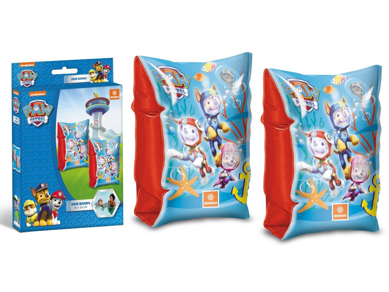 Coppia di braccioli Paw Patrol, realizzati da Mondo, tutta la qualità di un’azienda Italiana con tutta la simpatia delle Immagini di Paw Patrol, la giunzione del braccialetto che tocca la pelle è priva di sbavature e viene trattata finemente senza danneggiare la pelle del bambino. I braccioli sono morbidi ma spessi e sicuri.