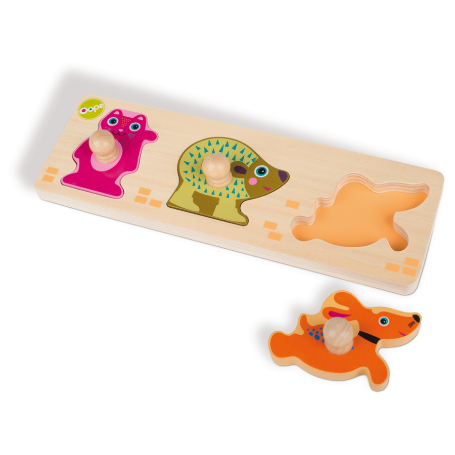 Easy-shapes! Gioco in legno di alta qualità e dai colori vivaci composto da quattro pezzi.