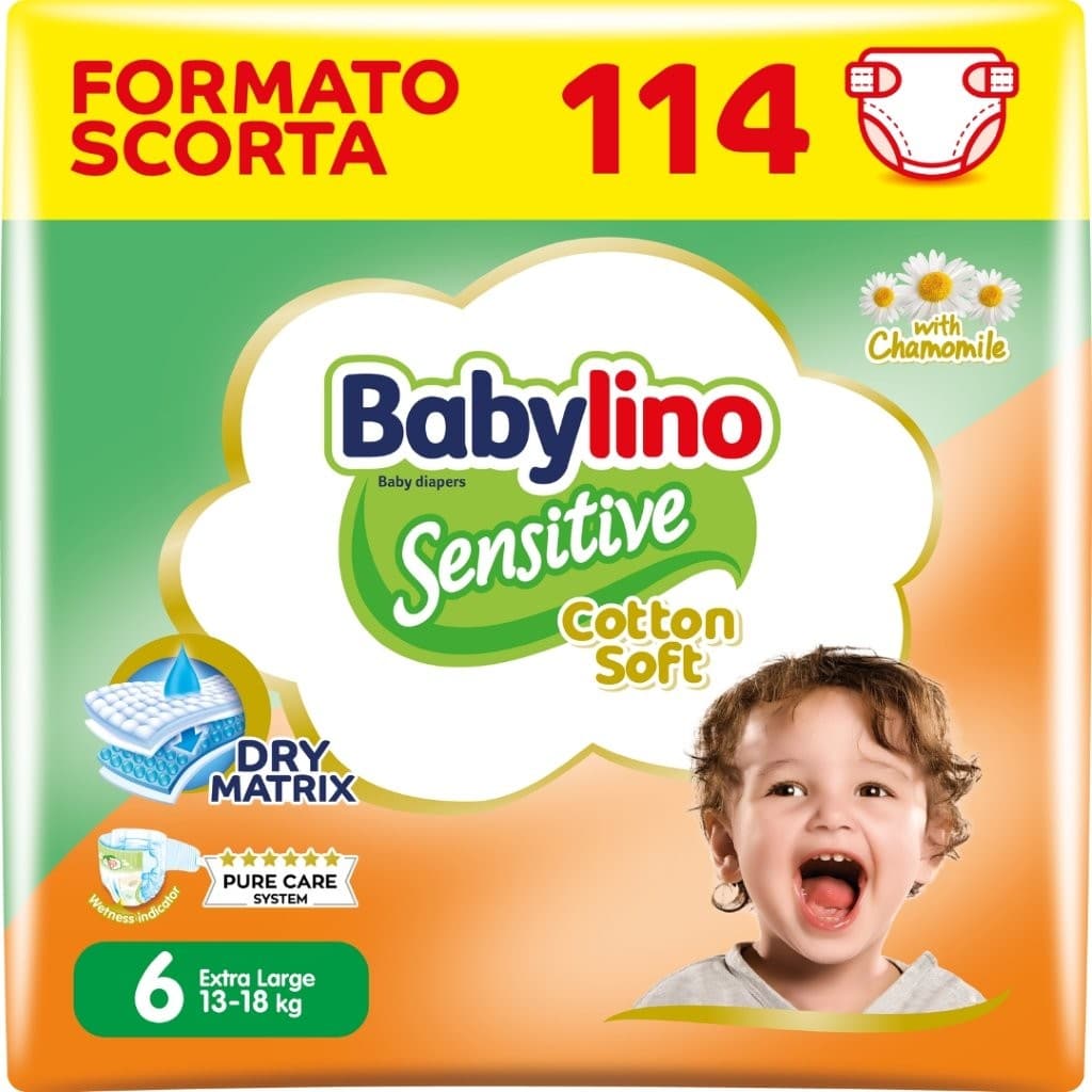 I Pannolini Sensitive Babylino Taglia 6 – Pacco Convenienza con 3 confezioni da 38 (114 pannolini totali) sono i primi in Europa certificati OEKO-TEX Standard 100 Classe 1 per assenza di sostanze nocive a bimbi da 0 a 36 mesi.I primi a vincere il premio Product Safety Award assegnato dalla Commissione Europea per la sicurezza dei materiali. Con estratto di camomilla e capsule di extra morbidezza per offrire una maggiore delicatezza sulla pelle. Super assorbenti grazie alla tecnologia Dry Matrix che cattura l’umidità e la trattiene lontano dalla pelle.