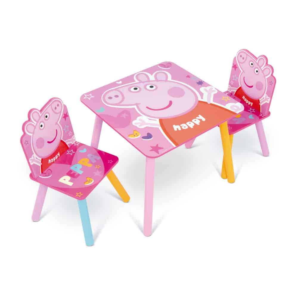 Dimensione: 50x50x44 cmAbbellisci la cameretta con questo bellissimo set completo di Tavolino e 2 Sedie di Peppa Pig! Realizzato in legno MDF con le immagini del celebre cartone amato dai bambini, sarà un meraviglioso complemento d’arredo per la camera dei vostri piccoli e un utilissimo spazio in cui giocare e dar spazio alla fantasia ed immaginazione. Facilissimo da montare si pulisce con un panno umido.