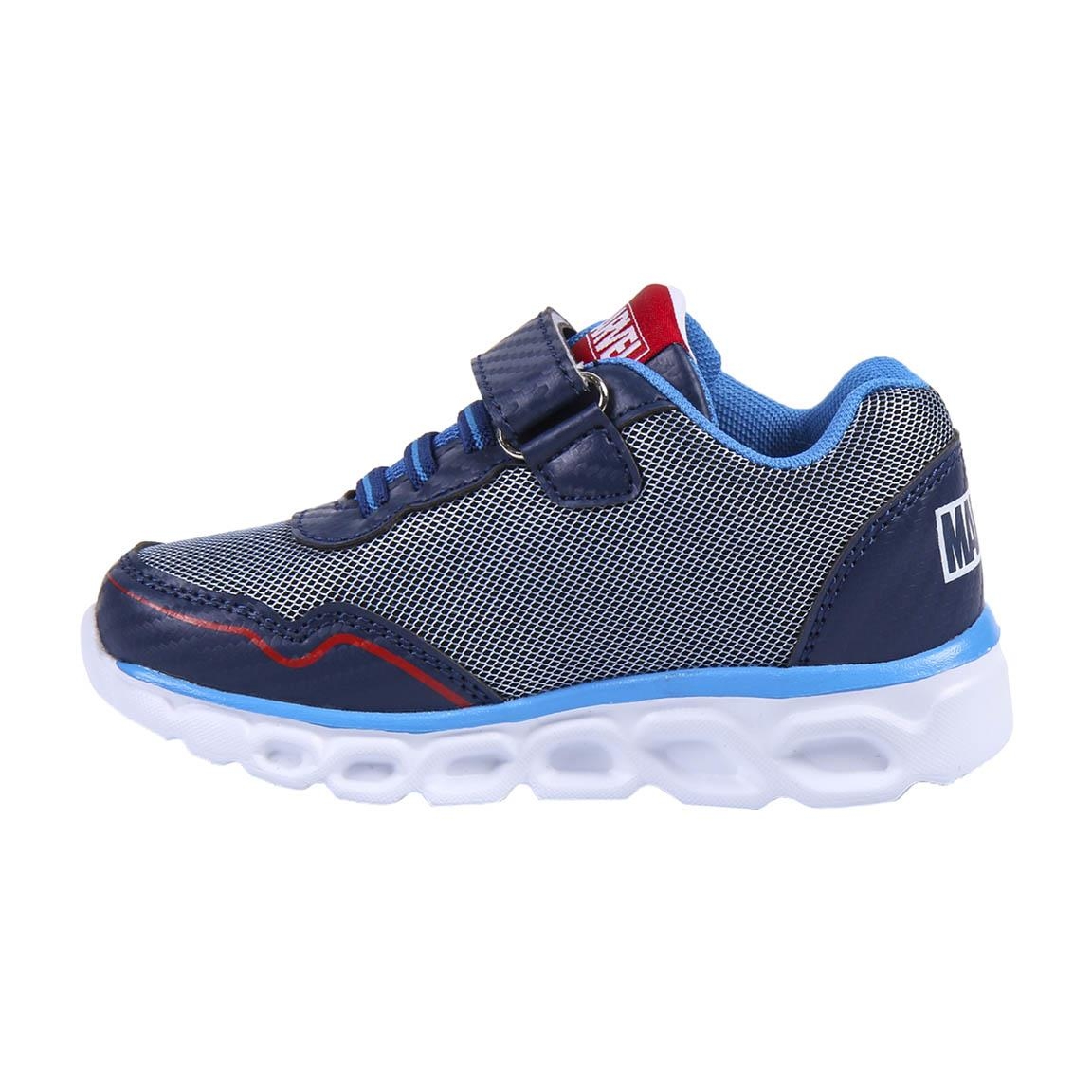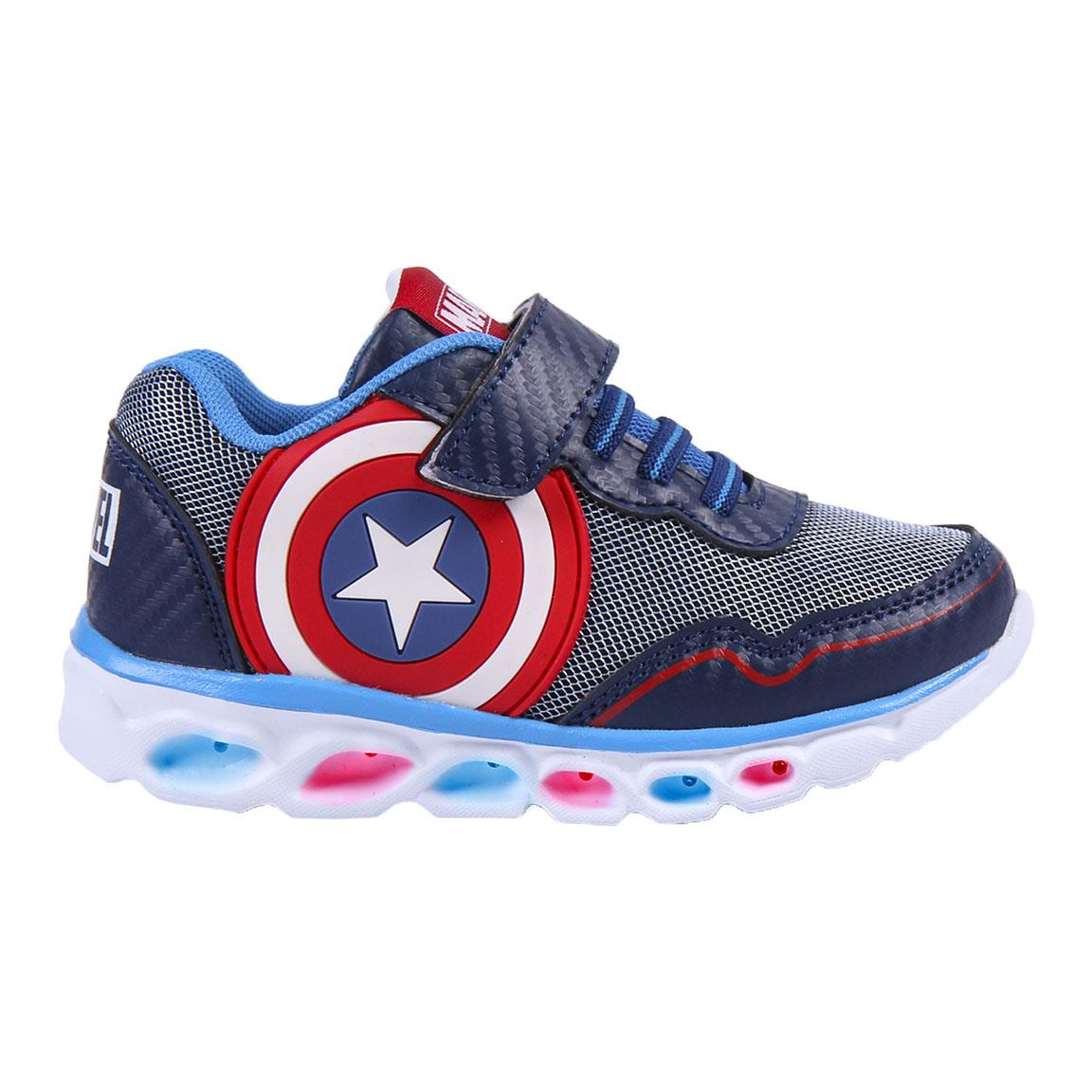 Scarpe con suola leggera iniettata per il massimo comfort del nostro piccolo. Licenza ufficiale Marvel con le immagini di Capitan America disponibile nelle taglie dalla 28 alla 35.