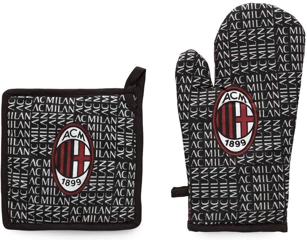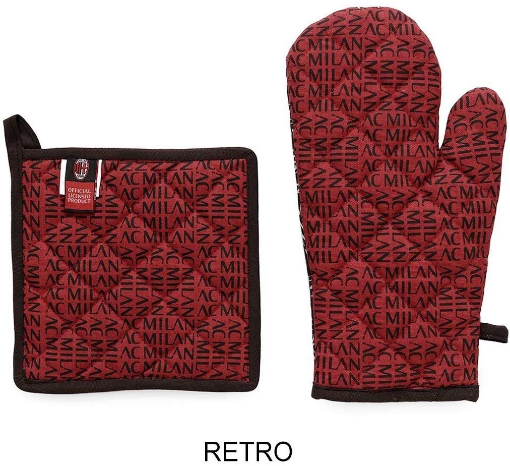 Fantasia in cucina per i cuori Rossoneri. Personalizziamo la cucina di casa e stupiamo gli amici con questo set composto da presina e guanto per forno del Milan.