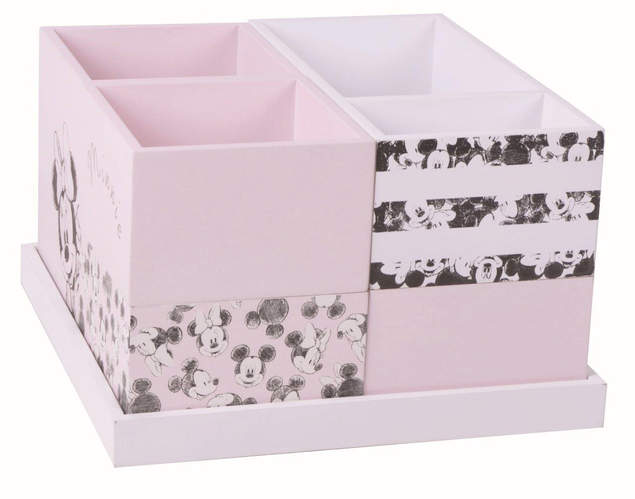 Pratico set in legno da scrivania con più contenitori, per tenere in ordine la scrivania e la cameretta con la dolcezza di minnie, per piccoli e adulti. Contenitori separabili,e sovrapponibili