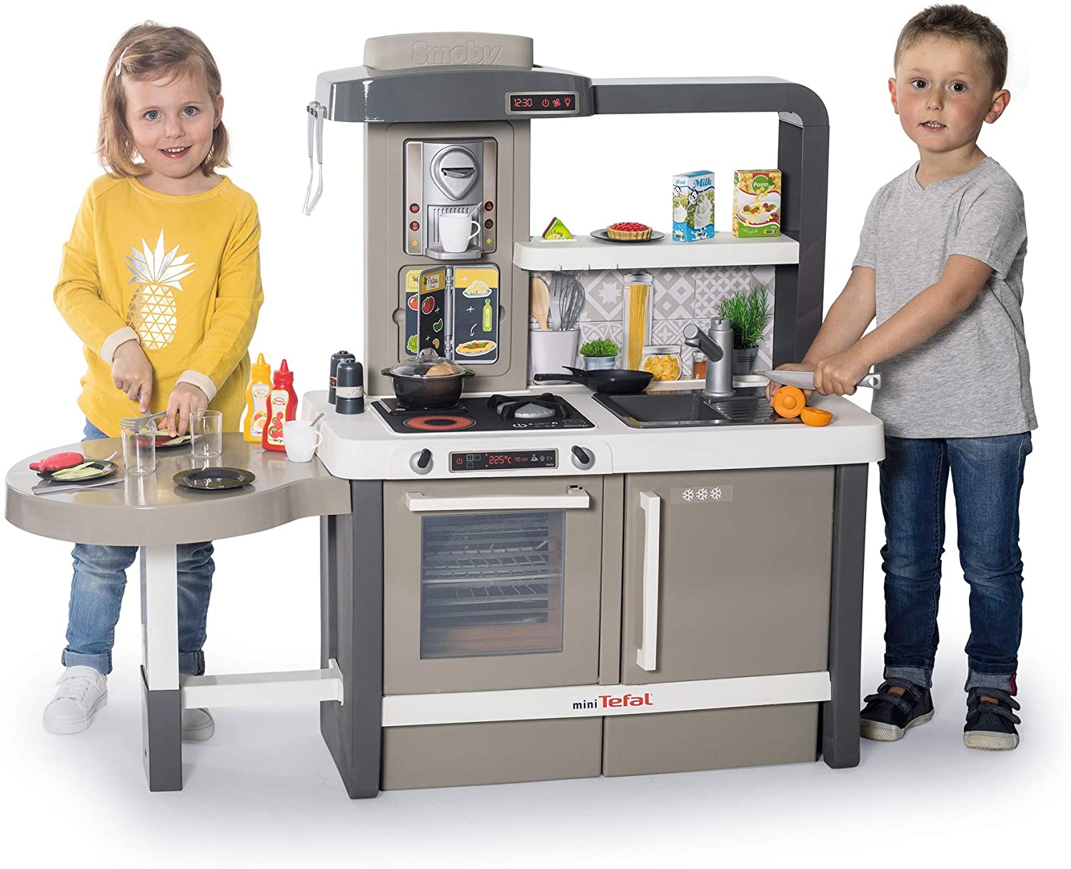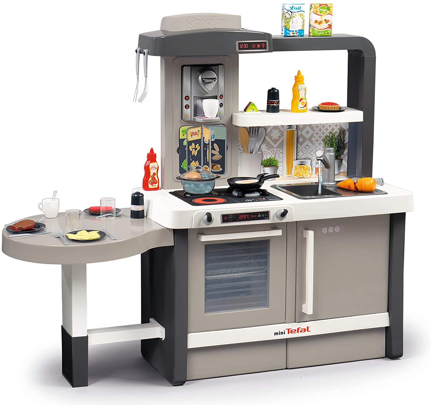 Cucina Evolutive: l’altezza della cucina può essere adattata grazie agliappositi supporti per seguire la crescita del bambino. Con 40 accessori,effetto acqua che bolle. All’interno pasta termosensibile (cambia colore seimmersa in acqua fredda) e carota che si taglia davvero! Funziona con 3batterie LR03 non incluse.Made in France