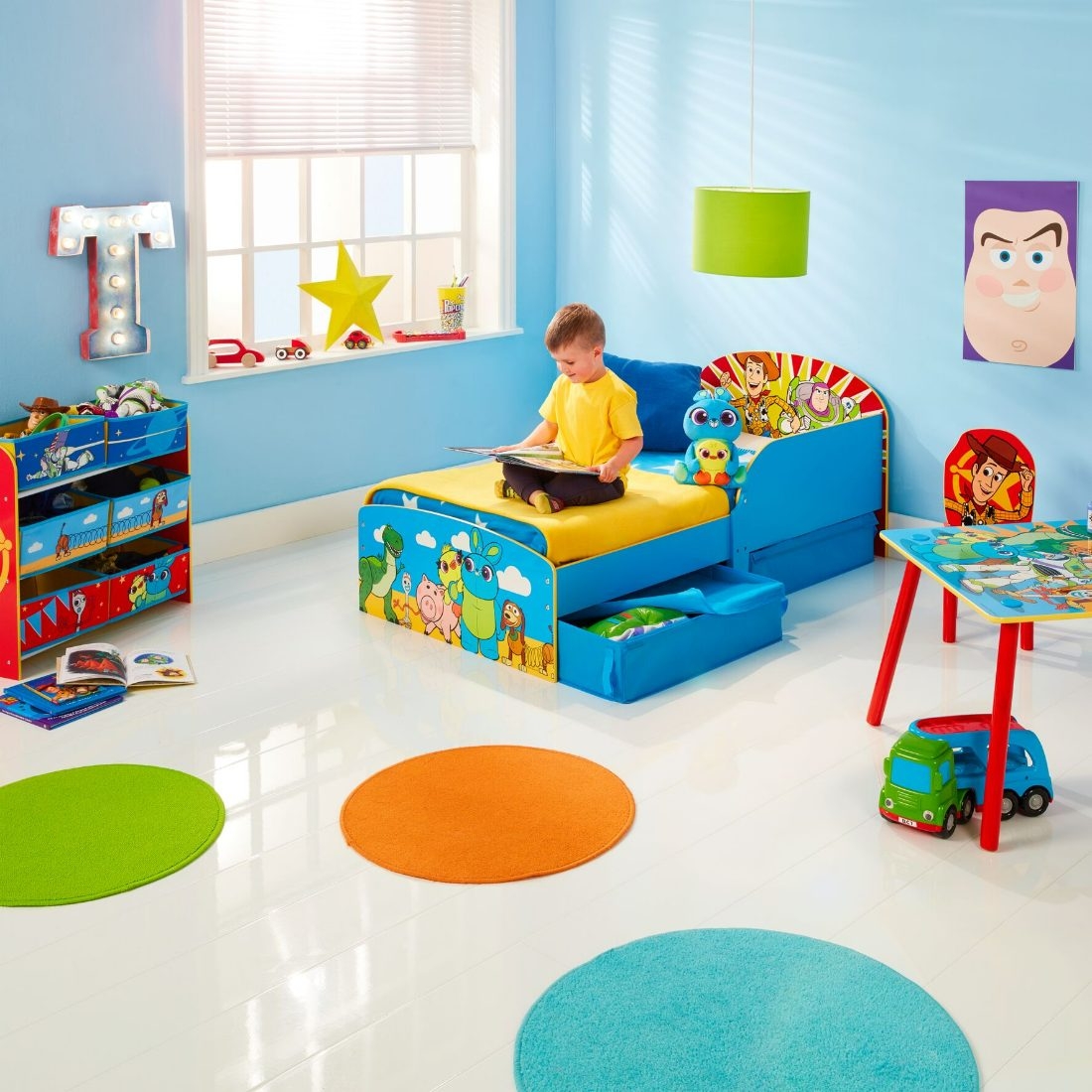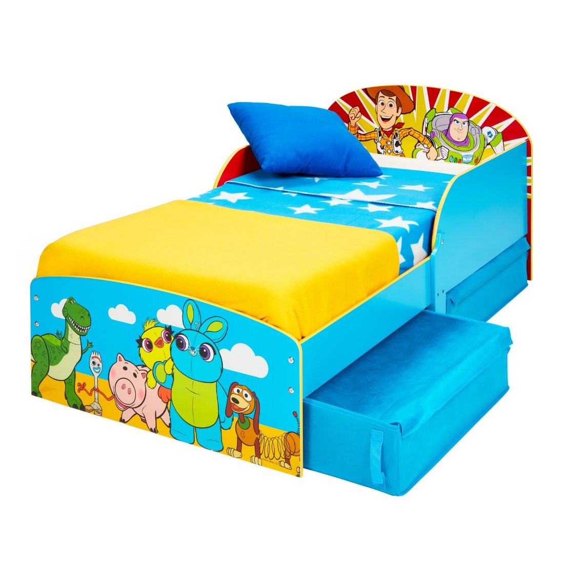 Il prodotto perfetto per l’emozionante passaggio dalla culla al letto. Coloratissimo letto con i personaggi di Toy Story è basso per facilitare l’accesso del bambino ed ha le sponde per evitare le cadute. Si monta facilmente e si pulisce con panno umido.Adatto a partire dai 18 mesi. Dimensioni del letto montato (circa) 59 cm (A) x 77 cm (l) x 142 cm (P)• 2 cassetti contenitore sottoletto, ogni cassetto (circa) 65 cm (P) x 50 cm (l) x 15 cm (A)