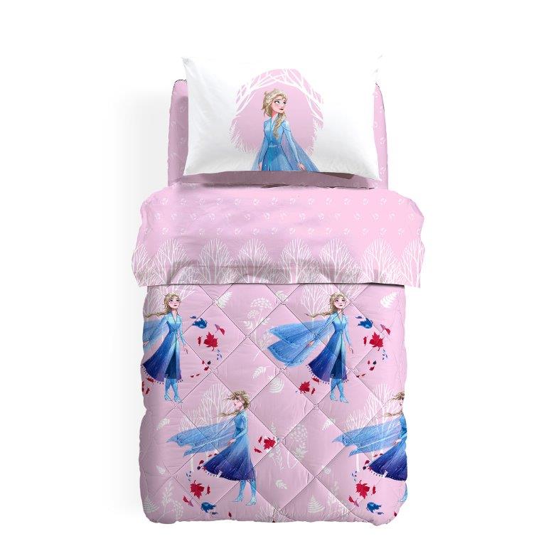 Trapunta per letto 1 piazza e mezzo, con disegno di Frozen, in morbido cotone e imbottitura in fibra di poliestere anallergica. La trapunta perfetta per la camera delle nostra bambine con tutta la qualità Caleffi.