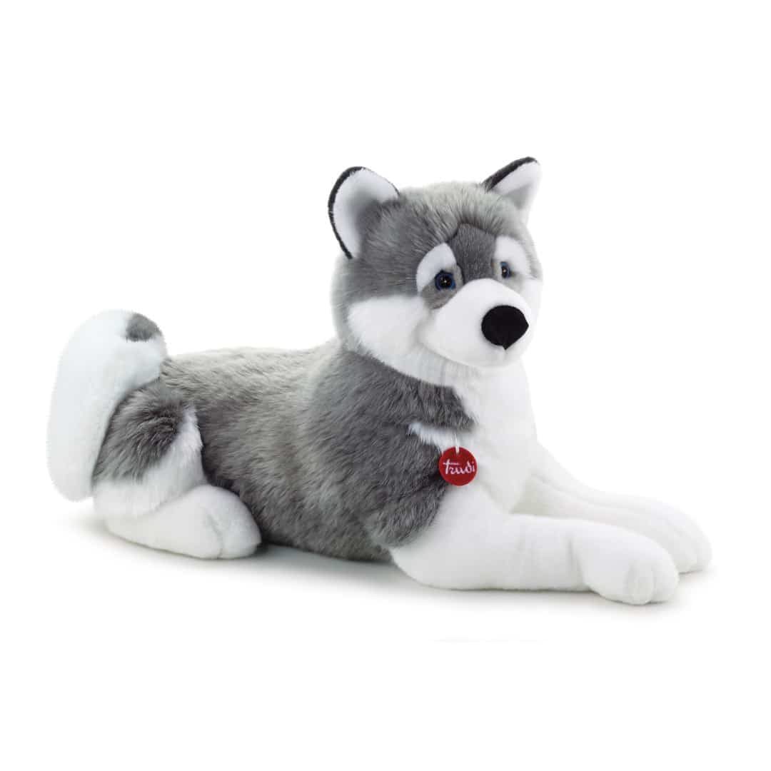 Marcus rappresenta un dolcissimo Husky, una tra le razze più amate. Il pelo e i colori utilizzati rappresentano fedelmente il Siberian Husky. Il dettaglio delle orecchie, l’alternanza dei grigi e bianchi nonché la folta coda gli conferiscono un tocco realistico. La posizione è distesa, l’inclinazione della testa gli conferisce uno sguardo dolce; l’interpretazione è da adulto. Italian Design. Il peluche è lavabile a mano, utilizzando una spugna e sapone neutro.