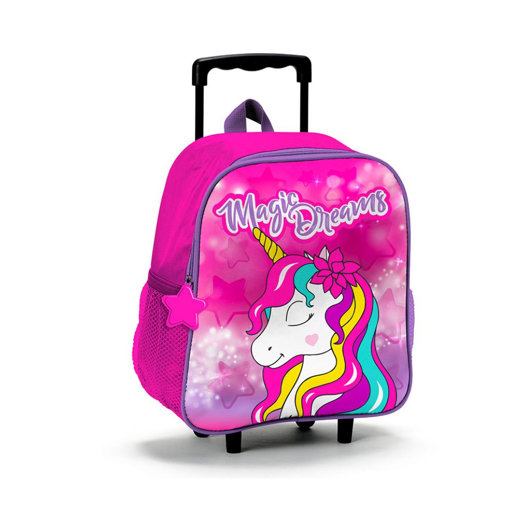 Dimensione: 27x31x11 cmLo zaino trolley Unicorno è perfetto per portare con sé tutto ciò che serve all’asilo. Grazie agli spallacci comodi è possibile portare lo zaino sulle spalle senza fatica o a mano grazie al comodo manico situato sulla parte superiore dello zaino, che rende il trasporto sulle ruote facile. Questo trolley è organizzato con un comparto rifinito con una zip con tiralampo personalizzata ed inoltre sono presenti anche due tasche laterali, comode per portare con sè la borraccia e l’ombrello. Realizzato con materiali di alta qualità e curato nei minimi dettagli, questo zainetto è l’ideale per portare sempre con te il mondo incantato degli Unicorni.