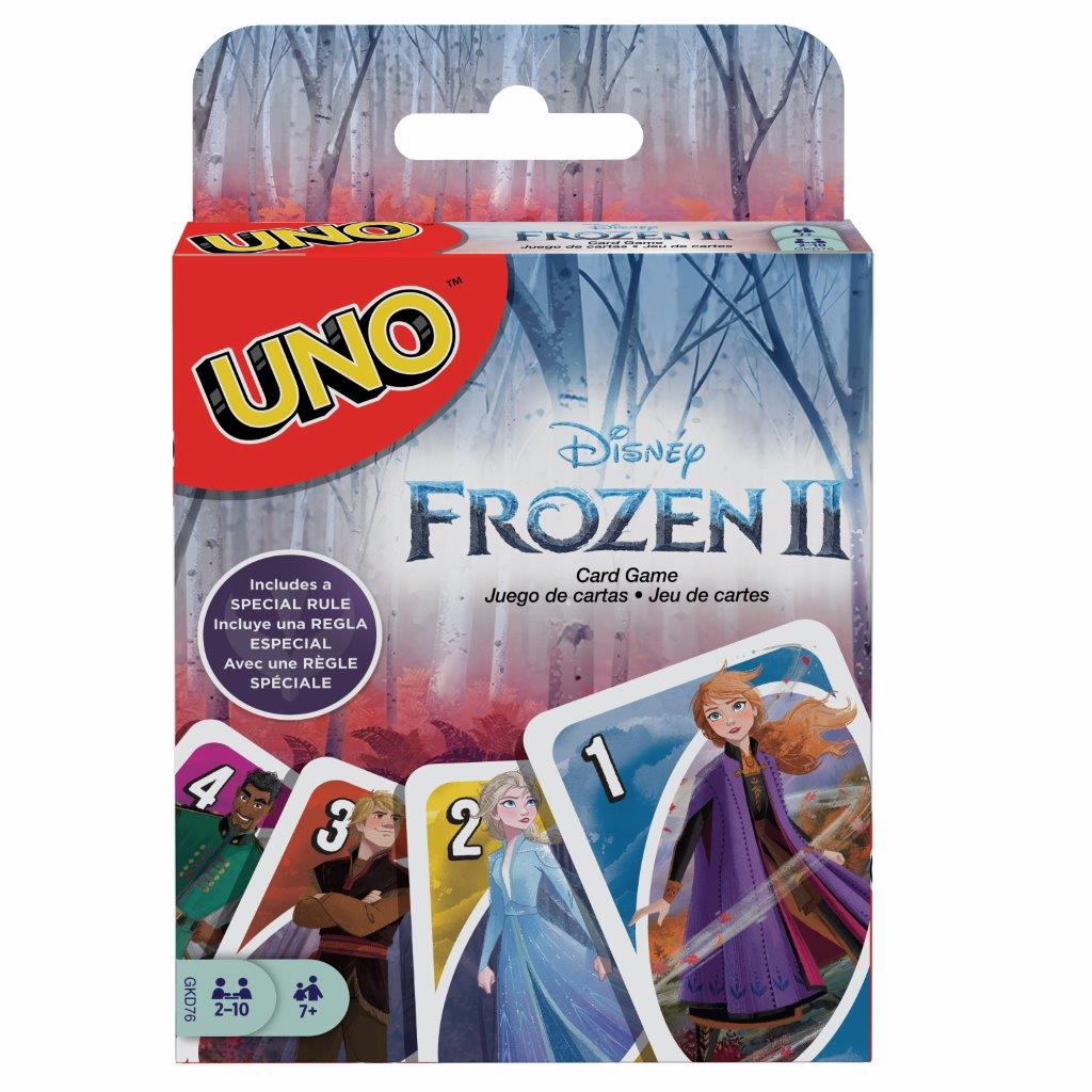 Ciascuna carta di questo colorato mazzo di UNO™ Disney Frozen II presenta le immagini dei personaggi più amati dai fan dell’attesissimo sequel. Misura: 9x2x14,5